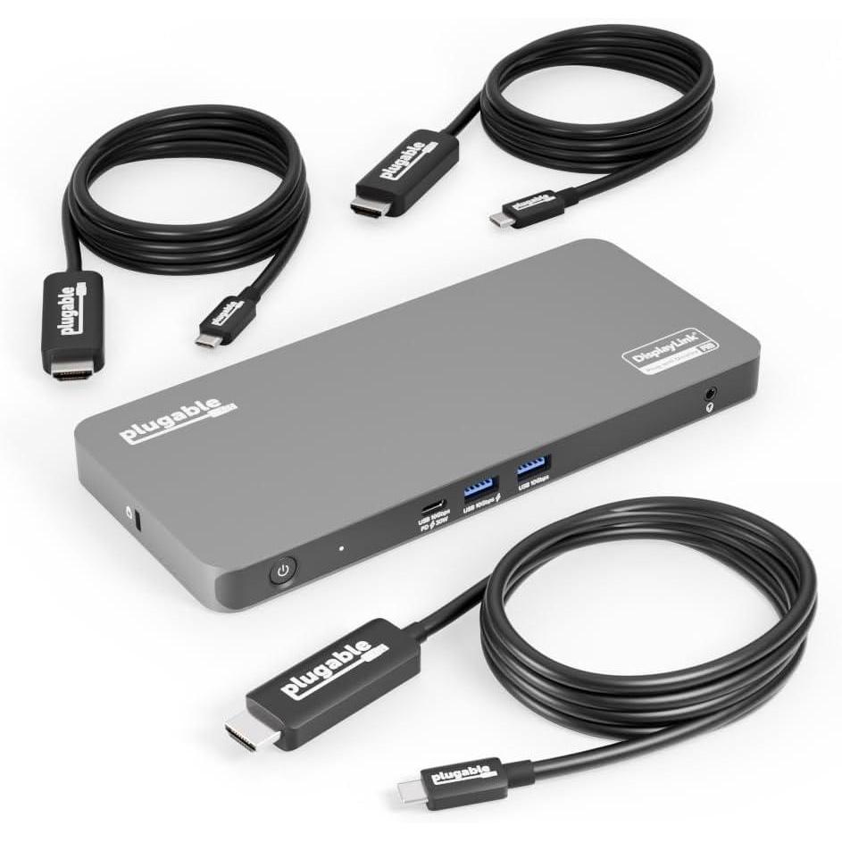imagePlugable 5 Monitor USBC Docking Station with 140W Power  3X USBC to HDMI 4K60Hz Cables 6ft  Complete Multimonitor Dock Bundle for Mac and Windows